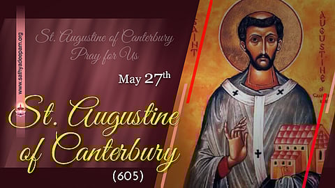 റോമിലാണ് വി. അഗസ്റ്റിന്റെ ജനനം. റോമില് സീലിയന് മലയില് വി. ആന്ഡ്രുവിന്റെ നാമത്തിലുള്ള ബനഡിക്ടൈന് മൊണാസ്റ്ററിയുടെ പ്രിയോറായിരുന്നു. 596-ല് മഹാനായ പോപ്പ് ഗ്രിഗറി വി. അഗസ്റ്റിനെയും മറ്റു 40 സന്ന്യാസിമാരെയും ഇംഗ്ലണ്ടില് സുവിശേഷപ്രചരണത്തിന് നിയോഗിച്ചു.